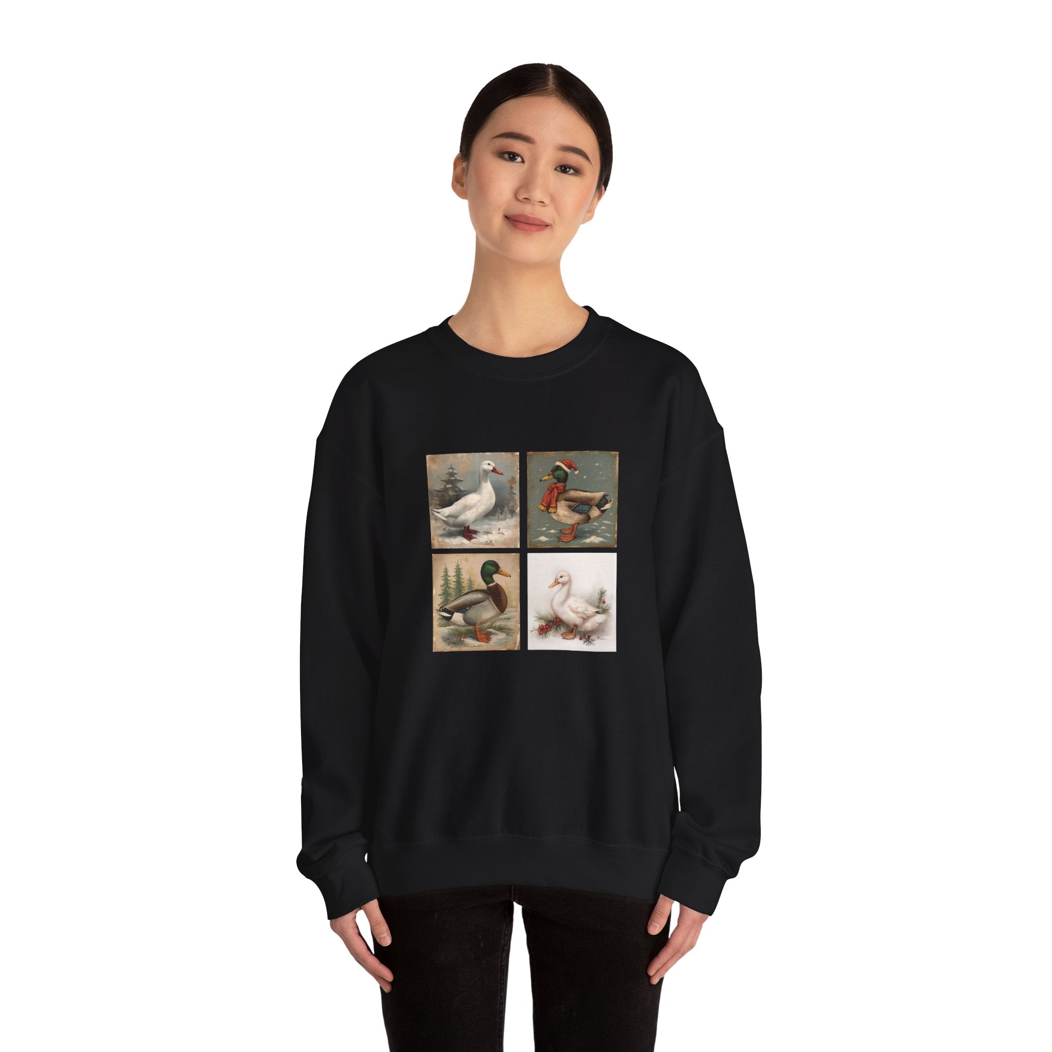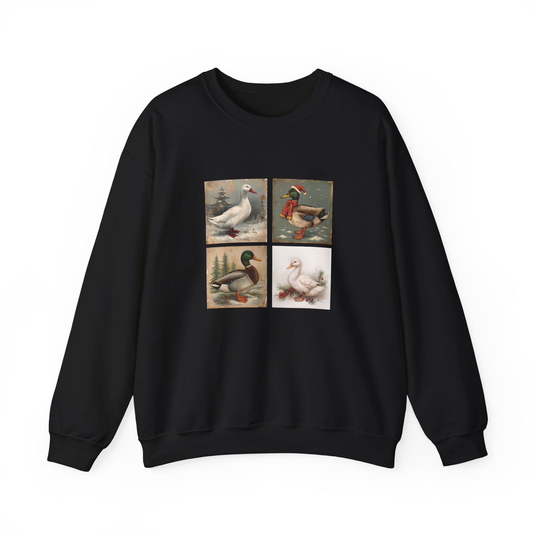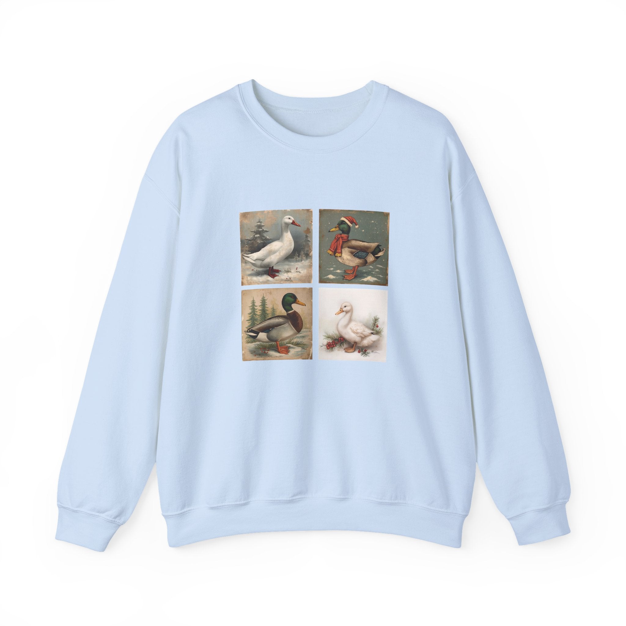 This vintage Christmas ducks sweatshirt brings a cozy and nostalgic vibe perfect for the holiday season. It is ideal for adults looking for a comfortable and festive sweatshirt to wear during Christmas celebrations.