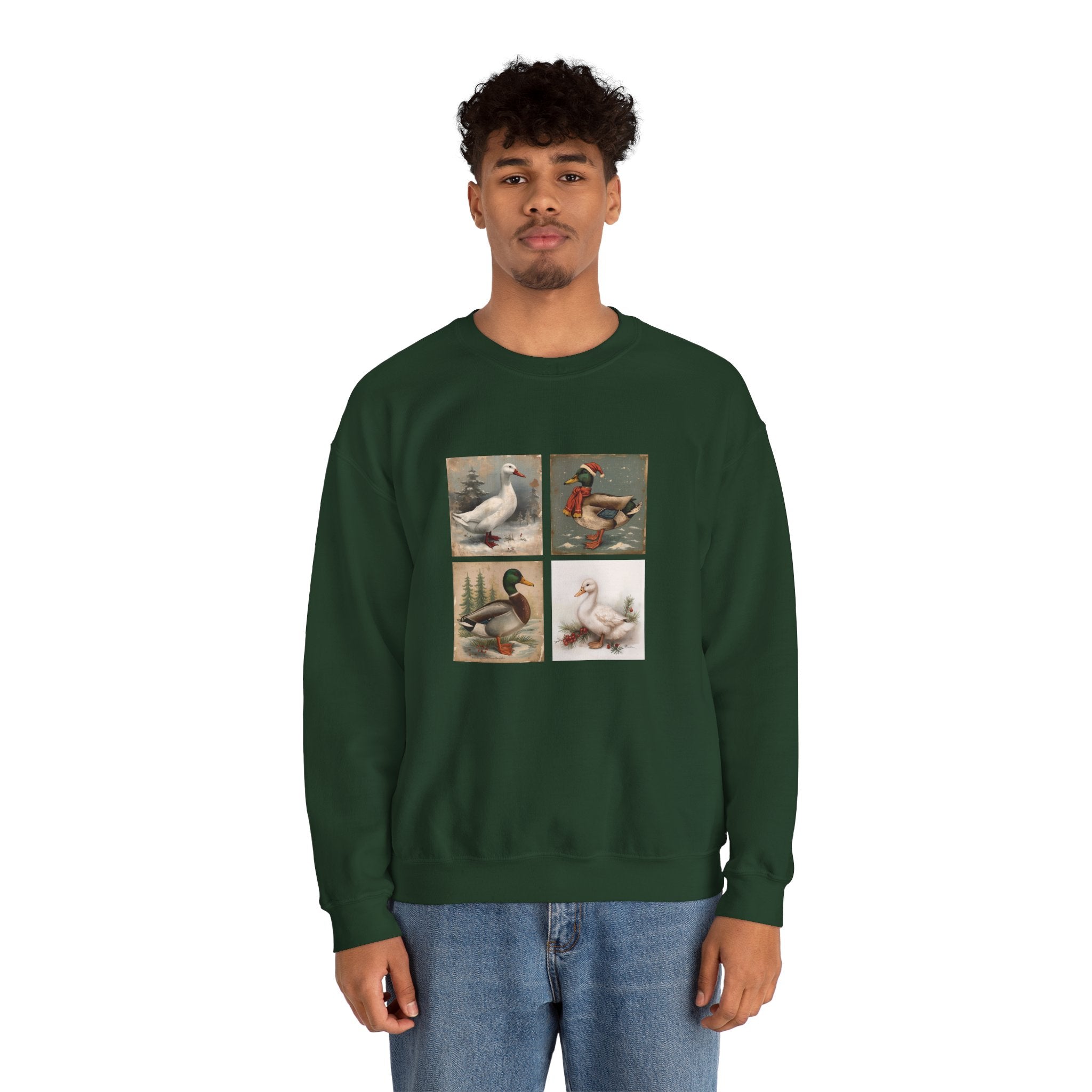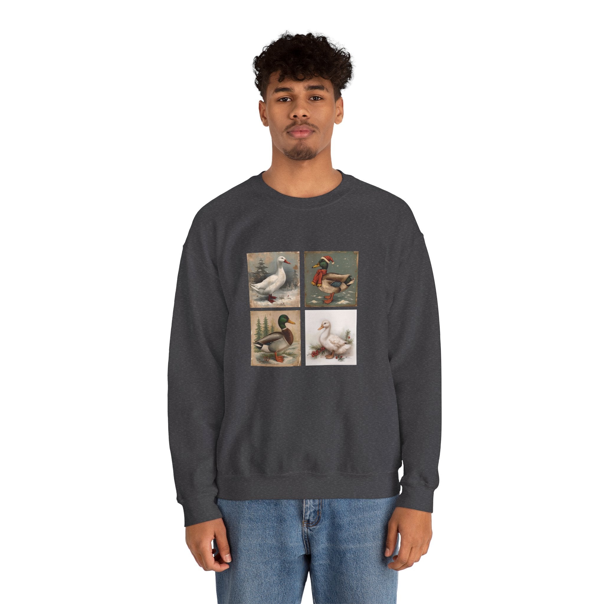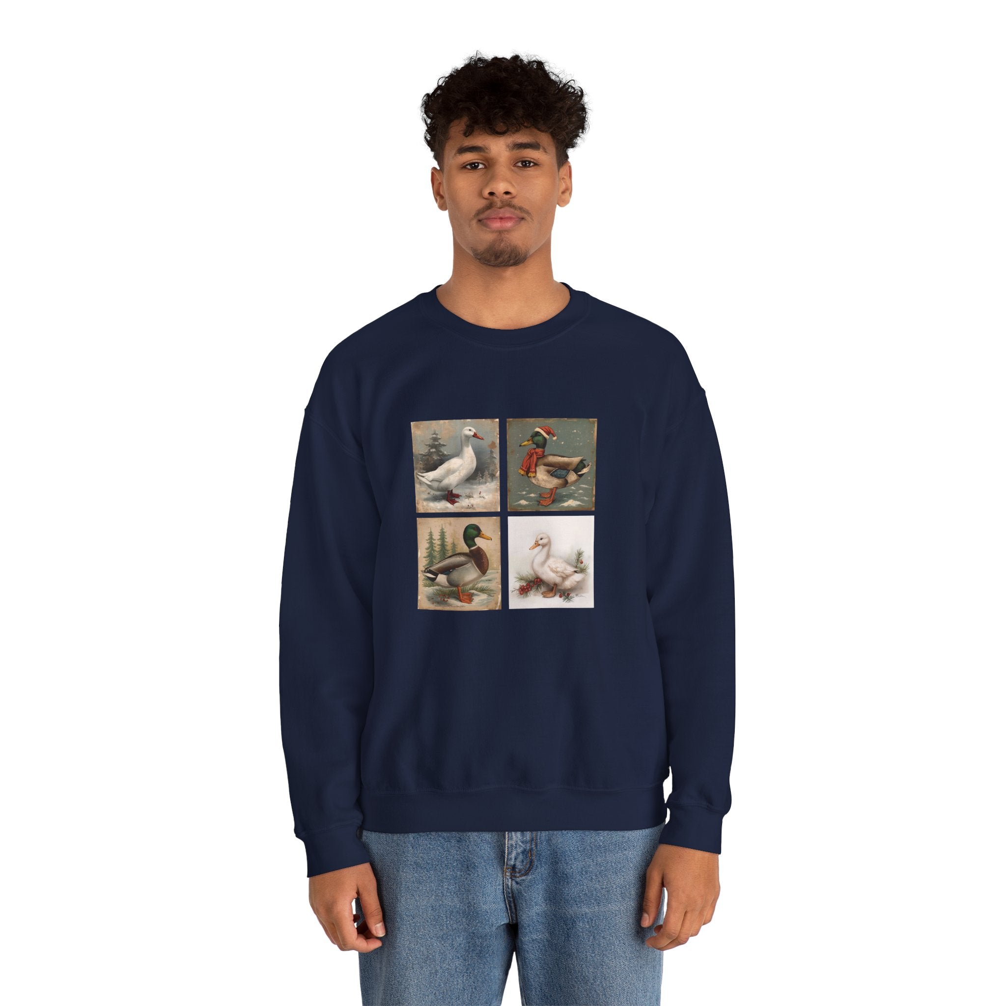 This vintage Christmas ducks sweatshirt brings a cozy and nostalgic vibe perfect for the holiday season. It is ideal for adults looking for a comfortable and festive sweatshirt to wear during Christmas celebrations.